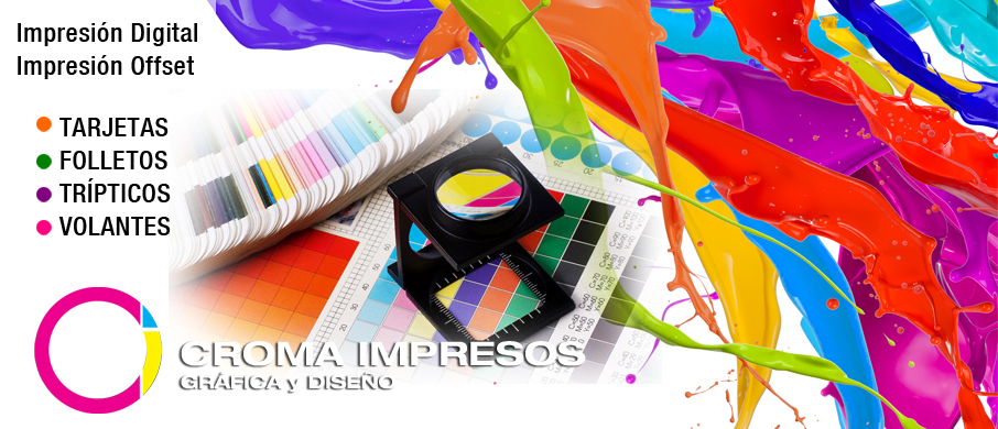 Croma Impresos es una empresa concebida para realizar en forma íntegra su idea gráfica. Sin que nuestros usuarios deban tener noción alguna de impresión digital u offset, somos la herramienta para su expresión. Tenemos los conocimientos, la atención personalizada, los mejores precios de mercado, bajos costos, e insumos que respetan las modernas pautas ecológicas.